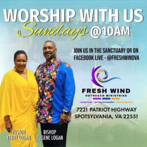 Sunday Morning Worship 01 Feb 10:00 am Fresh Wind Outreach Ministries 7221 Patriot Highway, Spotsylvania, VA 22551